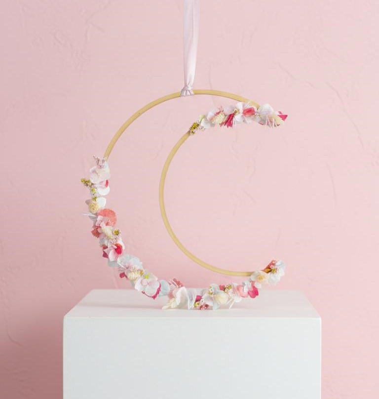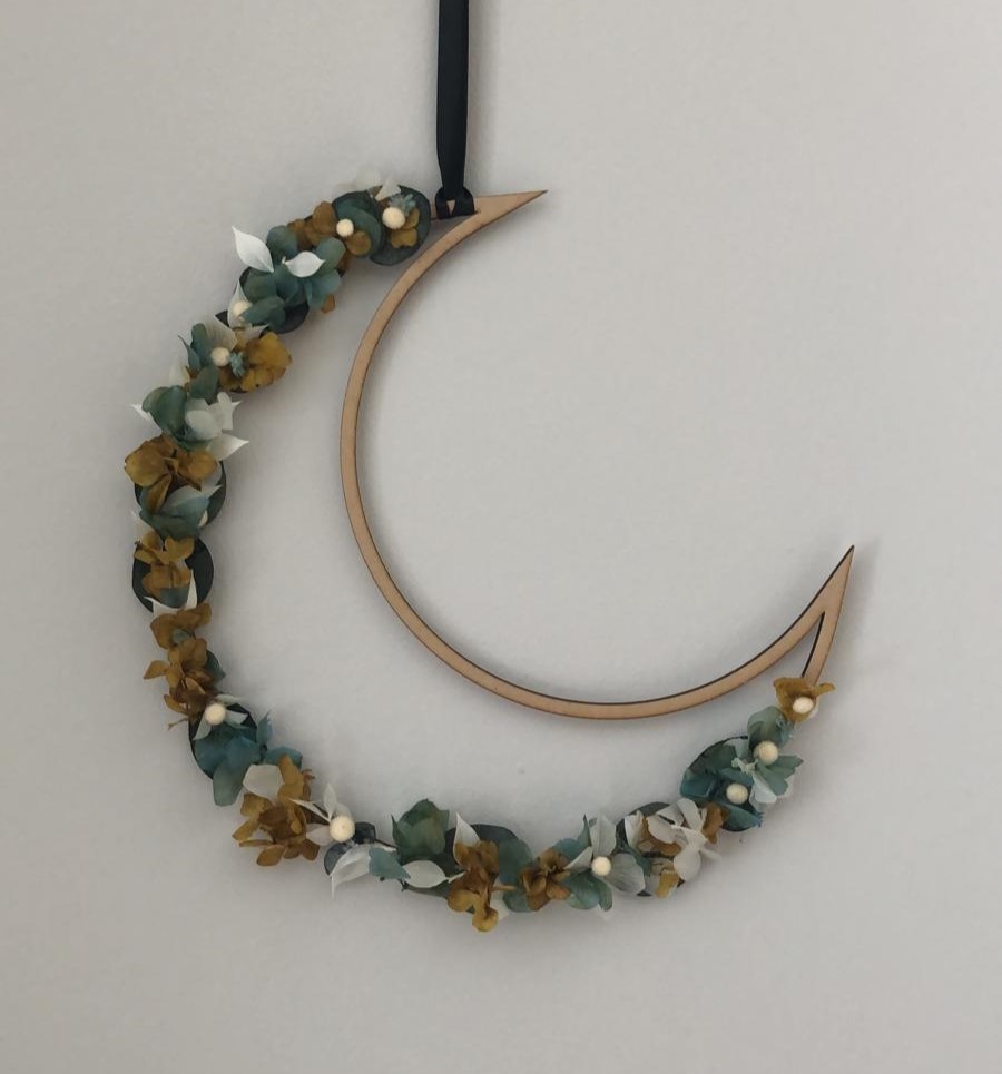 Luna hecha a mano con flores preservadas.