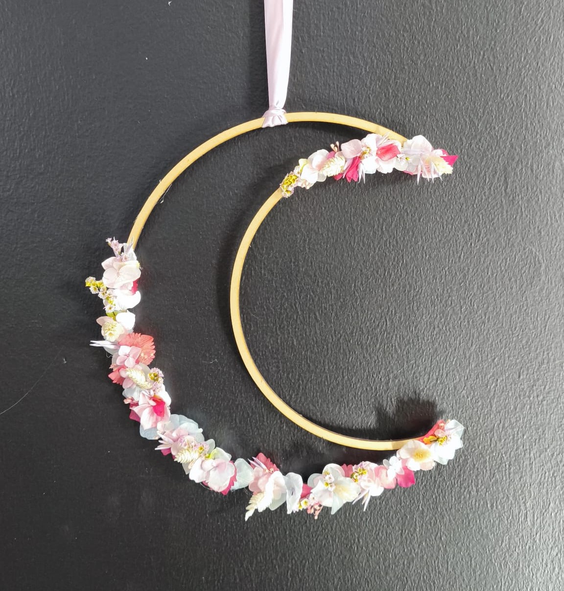 Luna hecha a mano con flores preservadas