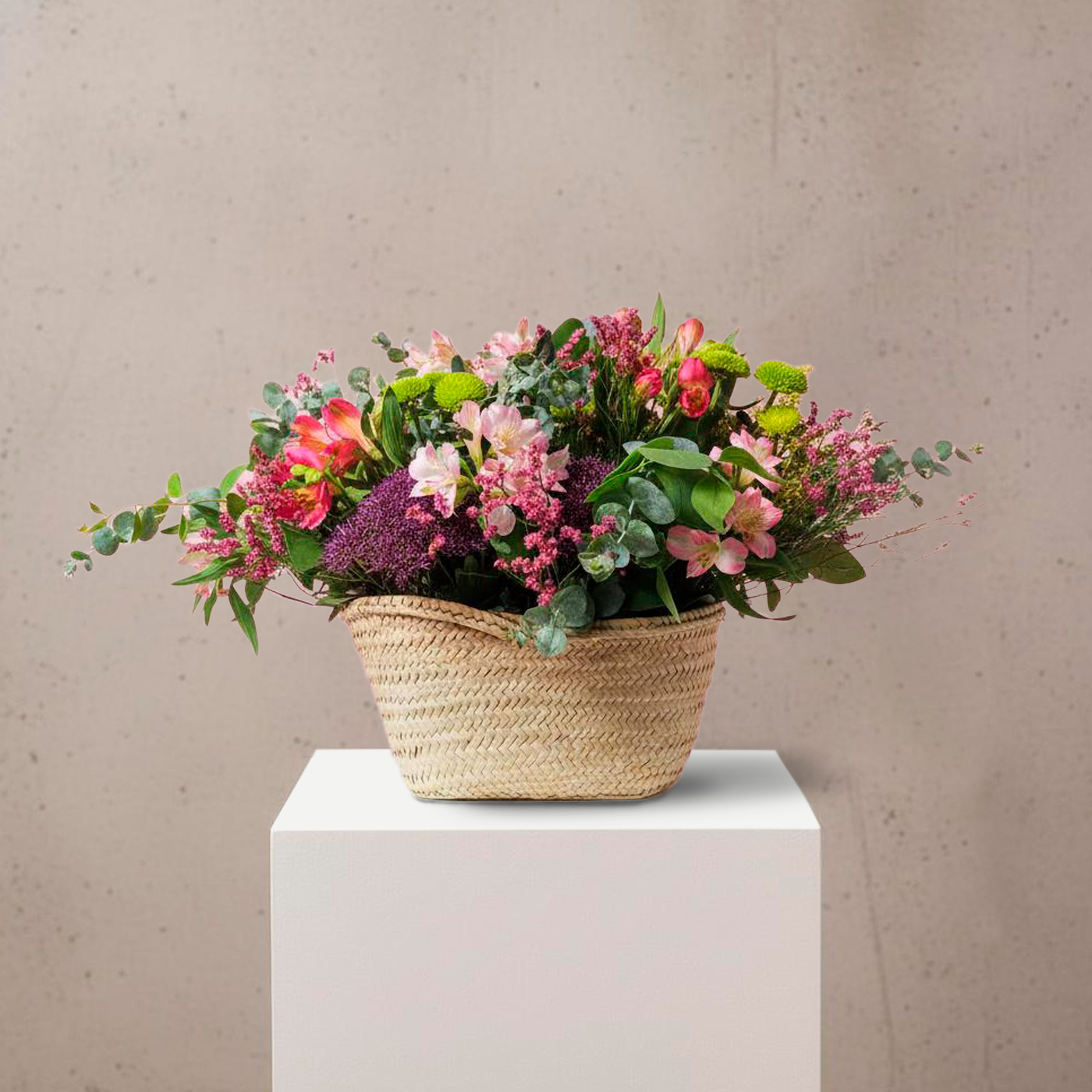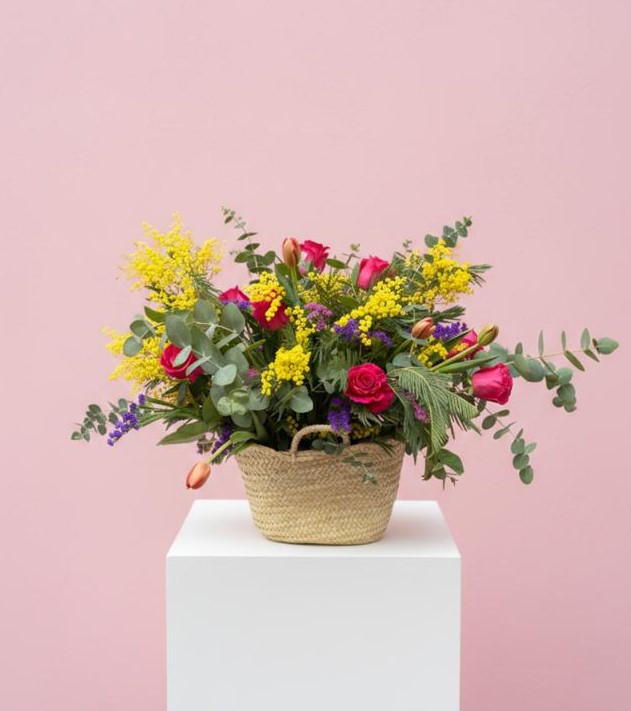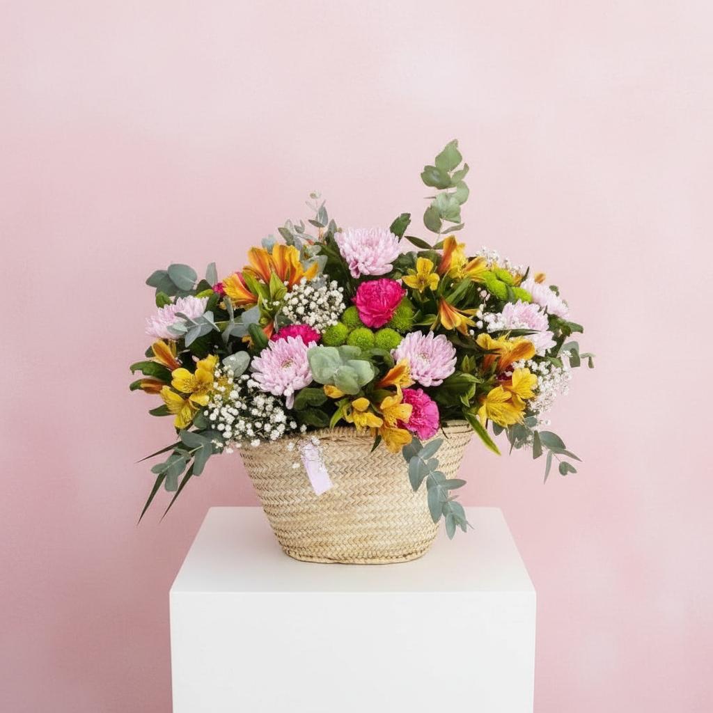 ** Las fotografías son orientativas y muestran diferentes trabajos dentro de cada tipo de cesta. Crearemos un arreglo floral lo más bonito posible con las opciones de flor y colores disponibles en cada momento.