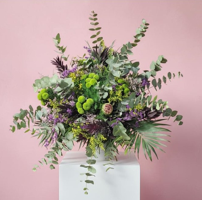 Nuestro ramo más Premium. Una variedad de verdes y flores especiales que harán de este ramo un regalo inolvidable